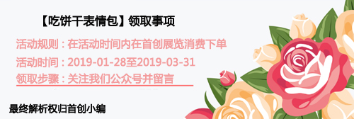 還沒有找到展覽設(shè)計搭建商的朋友們,不如考慮我們首創(chuàng)展覽。首創(chuàng)小編在這承諾,如果你找我們設(shè)計搭建一個展臺(不論價錢多少),首創(chuàng)小編我就會送你一系列的【吃餅干表情包】,只要你在我們公眾號關(guān)注我們并留言,即可獲取。有效期至2019年3月31日。