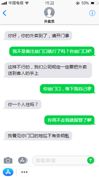 是不是很可怕,其實(shí)一個(gè)人點(diǎn)外賣不建議填寫家門口,填寫大樓下是比較安全的。不過說白除了自我保護(hù)意識(shí)還有安全設(shè)備也很重要的,現(xiàn)在很多家庭都會(huì)安裝攝像頭,自動(dòng)報(bào)警裝置在家門。